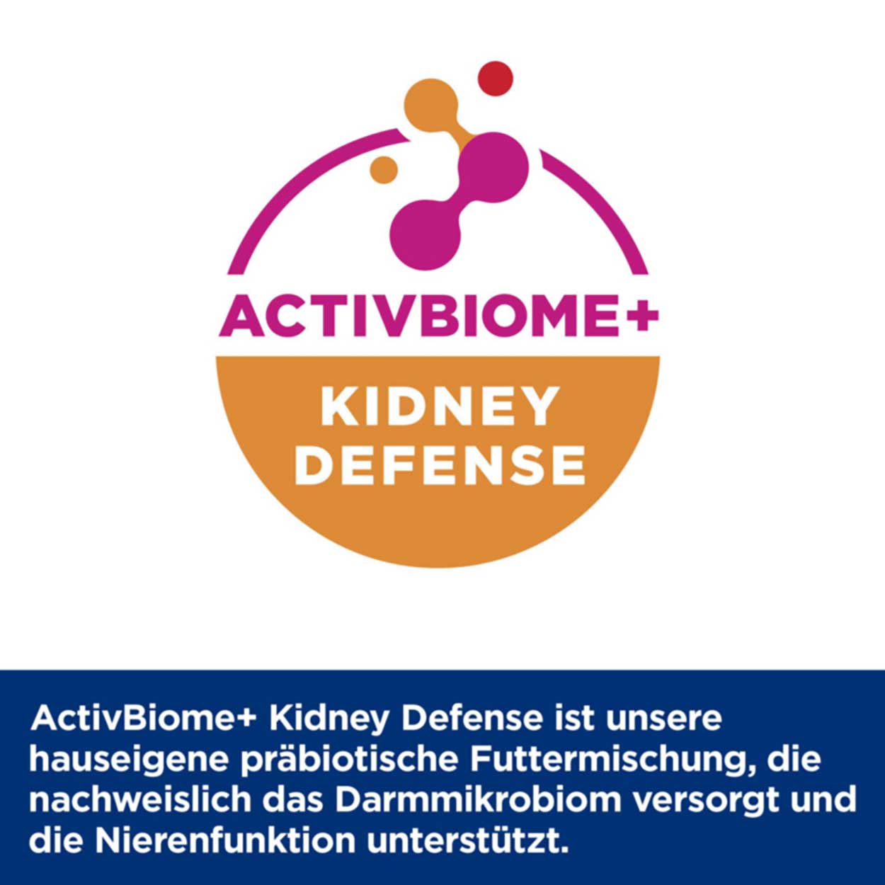 Fleisch und tierische Nebenerzeugnisse (Huhn 17%), pflanzliche Nebenerzeugnisse, Getreide, Zuckerarten, Fisch und Fischerzeugnisse, Öle und Fette, Eier und Eierzeugnisse, Mineralstoffe. ActivBiome+ Kidney Defense Mischung aus präbiotischen Fasern (0,29 %): Betain, Haferkleie, Fructooligosaccharide. Proteinquellen: Huhn, Schwein, Lachs, getrocknetes Eiweiß.