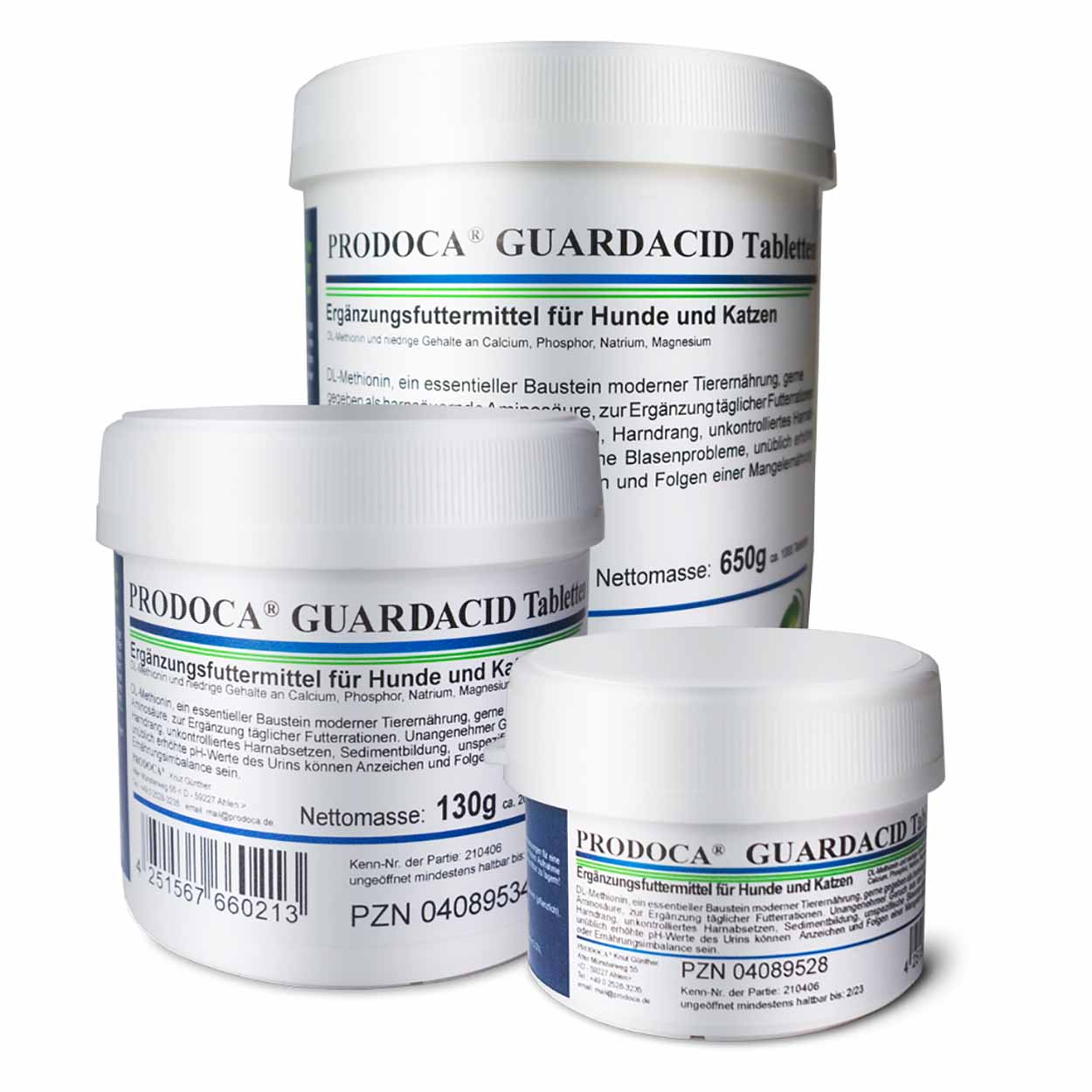 Ergänzungsfuttermittel für Hunde und Katzen. DL-Methionin und niedrige Gehalte an Calcium, Phosphor, Natrium, Magnesium